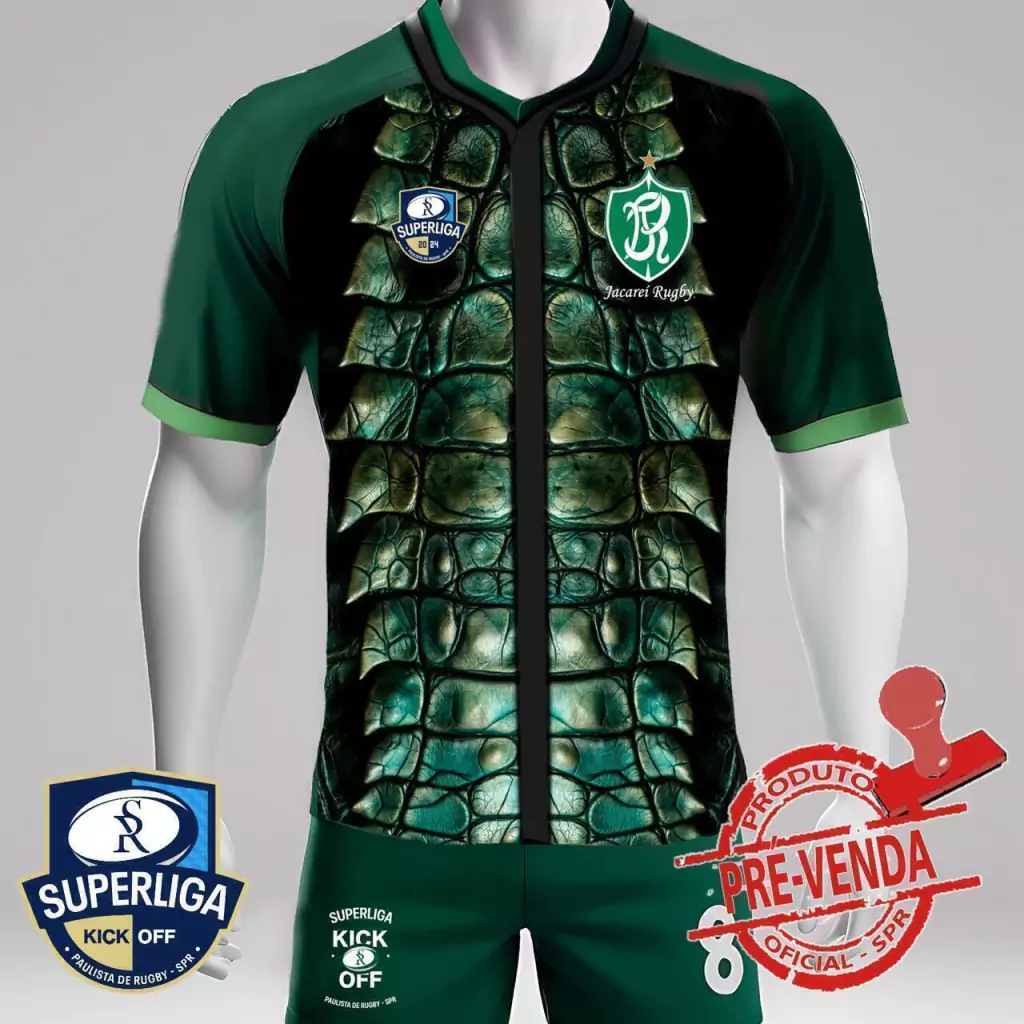A Associação Esportiva Jacareí Rugby apresenta sua mais nova camisa para torcedores, um verdadeiro manto que representa a força e as cores do ilustre mascote Jacaré!